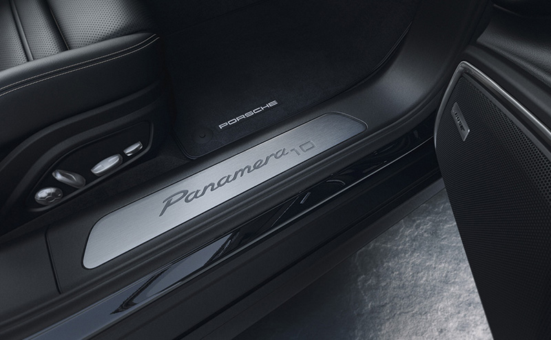 Комплектация «10 Years Edition» отличается расширенным базовым оснащением: новые 21-дюймовые колесные диски Panamera Sport Design цвета White Gold Metallic с блеском;  надпись «Panamera10» на передних дверях, также выполненная в цвете White Gold Metallic. Внутри автомобиля на панели со стороны переднего пассажира и на накладках порогов нанесен юбилейный логотип. Салон имеет частичную кожаную отделку черного цвета с декоративной строчкой цвета White Gold.